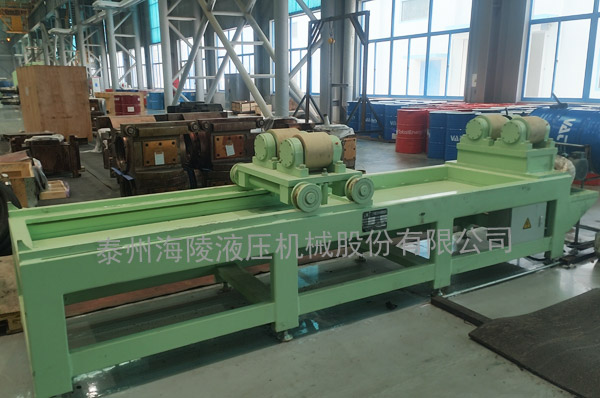輥旋機:我公司生產的輥旋機主要用于工作輥及中間輥光輥旋轉動作,可實現(xiàn)360°正反向旋。輥旋機配備了旋轉傳動機構、主動輥、從動移動輥。通過減速機帶動主動輥旋轉;可移動托輥臺下端設有移動輪,可手動實現(xiàn)沿軸向移動,適用于不同輥體的位置調整。支撐點設置在軋輥軸頸處,支撐軋輥軸頸的托輥間距實現(xiàn)手動控制和手動鎖緊,以滿足多種軋輥規(guī)格需要。